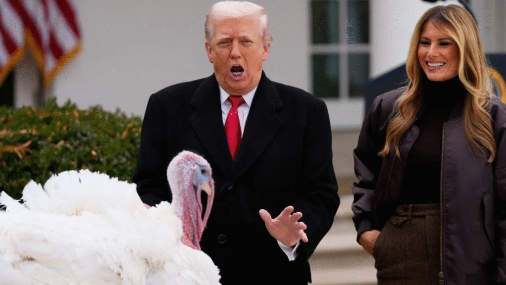 अमेरिका के राष्ट्रपति डोनाल्ड ट्रंप ने थैंक्सगिविंग से पहले व्हाइट हाउस की परंपरा निभाते हुए वाडल और गोबल नाम के दो टर्की पक्षियों को ‘माफी’ दी। समारोह में ट्रंप ने राजनीतिक हंसी-मजाक भी किया। यह परंपरा 1863 से चल रही है और माफ किए गए टर्की थैंक्सगिविंग भोज में परोसे जाने से बच जाते हैं।