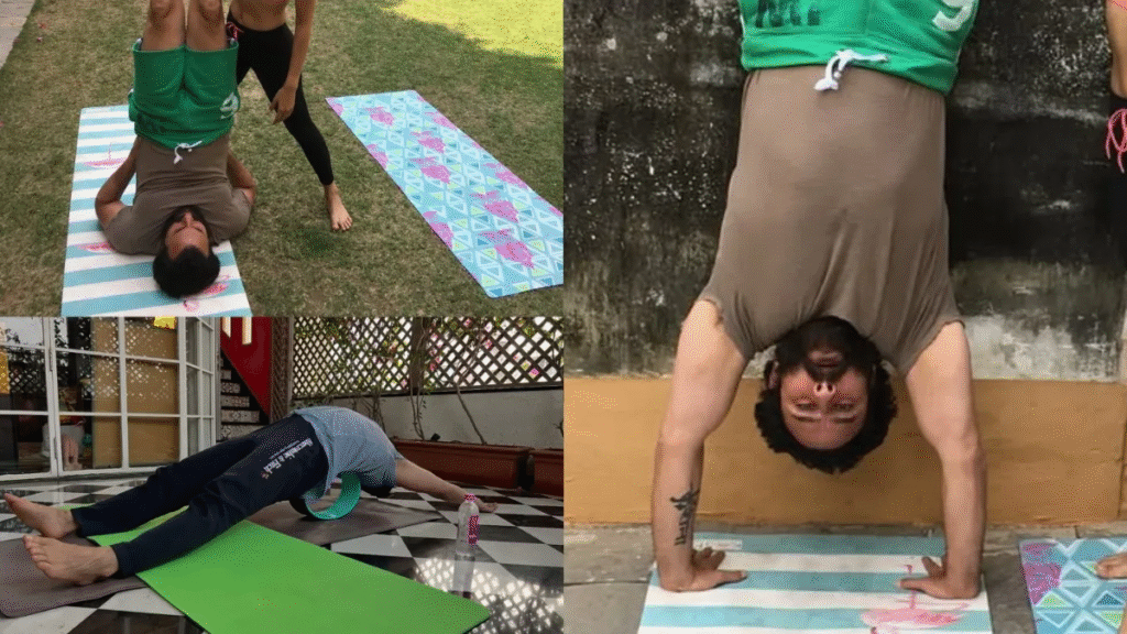 - हैंडस्टैंड: हैंडस्टैंड हाथों पर शरीर का संतुलन बनाकर, शरीर को उल्टा खड़ा करने की एक शारीरिक क्रिया है। इसमें कंधों, भुजाओं और कोर को मजबूत किया जाता है। इसे करने से रक्त संचार बेहतर होता है, और मानसिक एकाग्रता बढ़ती है। हैंडस्टैंड शुरू करने के लिए दीवार का सहारा लेकर, कोर और ऊपरी शरीर की ताकत बढ़ाकर, धीरे-धीरे अभ्यास करने की ज़रूरत होती है।