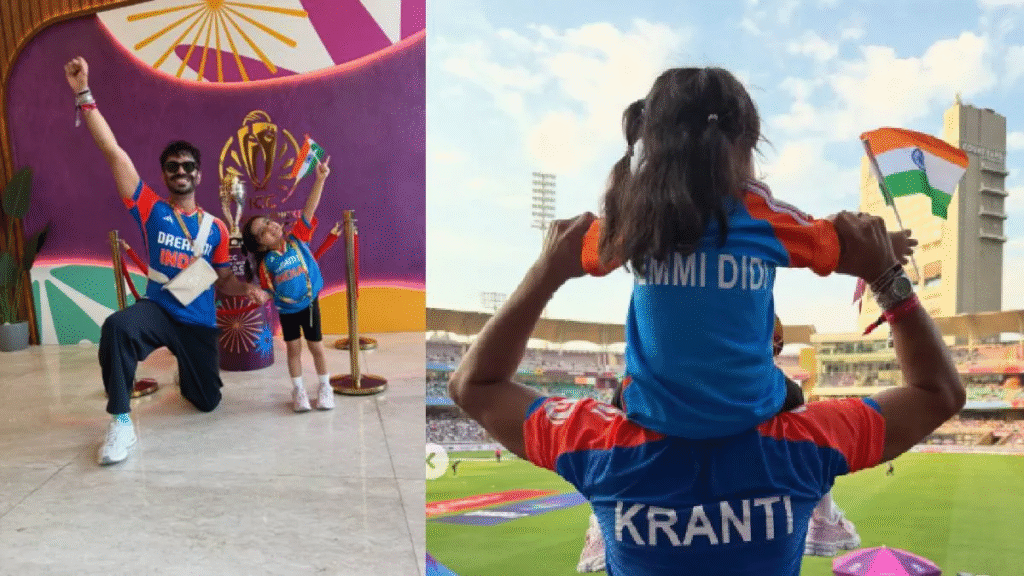 स्त्री, लुक्का छुपी, पति, पत्नी और वो, बद्रीनाथ की दुल्हनिया और दंगल जैसी फिल्मों के लिए मशहूर अपारशक्ति खुराना को बेटी आरजोई के साथ नवी मुंबई में भारत बनाम न्यूज़ीलैंड महिला विश्व कप मैच का आनंद लेते हुए देखा गया। आरजोई की जर्सी पर ‘जेम्मी दीदी’ लिखा था, जो भारतीय महिला क्रिकेट टीम की स्टार खिलाड़ी जेमिमा रोड्रिग्स को श्रद्धांजलि थी। महिला विश्व कप 2025 में टीम इंडिया ने न्यूज़ीलैंड को 53 रनों से हरा दिया। यह मैच 23 अक्टूबर को नवी मुंबई के डीवाई पाटिल स्टेडियम में हुआ। जीत का सीधा प्रसारण देखते हुए, अपारशक्ति खुराना और उनकी बेटी आरज़ोई ने स्टैंड्स से हरमनप्रीत कौर एंड कंपनी का उत्साहवर्धन किया। अपारशक्ति ने अपनी बेटी के साथ मैच की कुछ झलकियां साझा कीं। एक स्लाइड में, जब एक पत्रकार आरज़ोई से उनके पसंदीदा क्रिकेटर के बारे में पूछता है, जिनसे वह मिलना चाहेंगी, तो छोटी बच्ची जवाब देती है, जेम्मी दीदी।