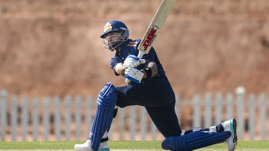 Virat Kohli: विजय हजारे ट्रॉफी 2025-26 में दिल्ली और गुजरात के बीच मुकाबला हो रहा है और इस मैच में गुजरात के कप्तान चिंतन गाजा ने टॉस जीतकर पहले गेंदबाजी करने का फैसला किया। इसके बाद दिल्ली की पहले बल्लेबाजी आ गई। मैच में सुपरस्टार बल्लेबाज विराट कोहली ने दमदार बल्लेबाजी की। दिल्ली की टीम ने अभी तक पांच विकेट के नुकसान पर 159 रन बना लिए हैं।